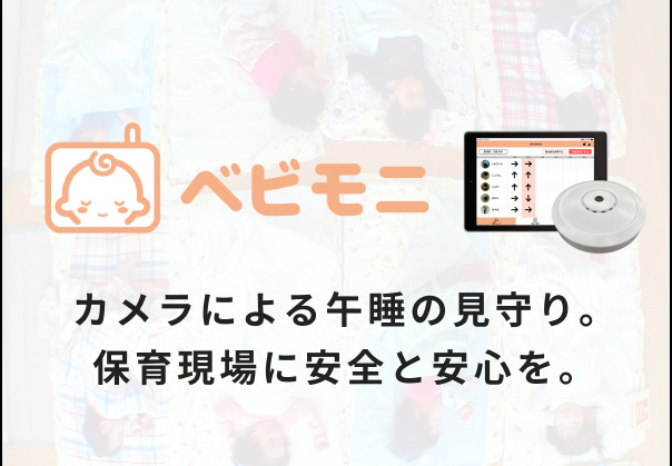 乳児のうつぶせ寝の事故防止のため、園ではお昼寝中の園児を先生たちが5分おきにチェックしています。当園では、そのチェックの際、先生と共に一緒に園児たちを見守ってくれるカメラ型午睡「ベビモニ午睡チェック」というシステムを導入しています。天井カメラを設置することで、乳幼児の姿勢を検知し、うつ伏せ時にはアラートを出しながら午睡チェック記録を残します。