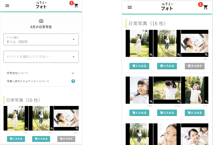 園で撮影した写真は、写真閲覧・購入サービス「ルクミーフォト」アプリにて公開しています。限定公開でセキュリティ面も安心です。期間中はいつでもご覧いただけます。